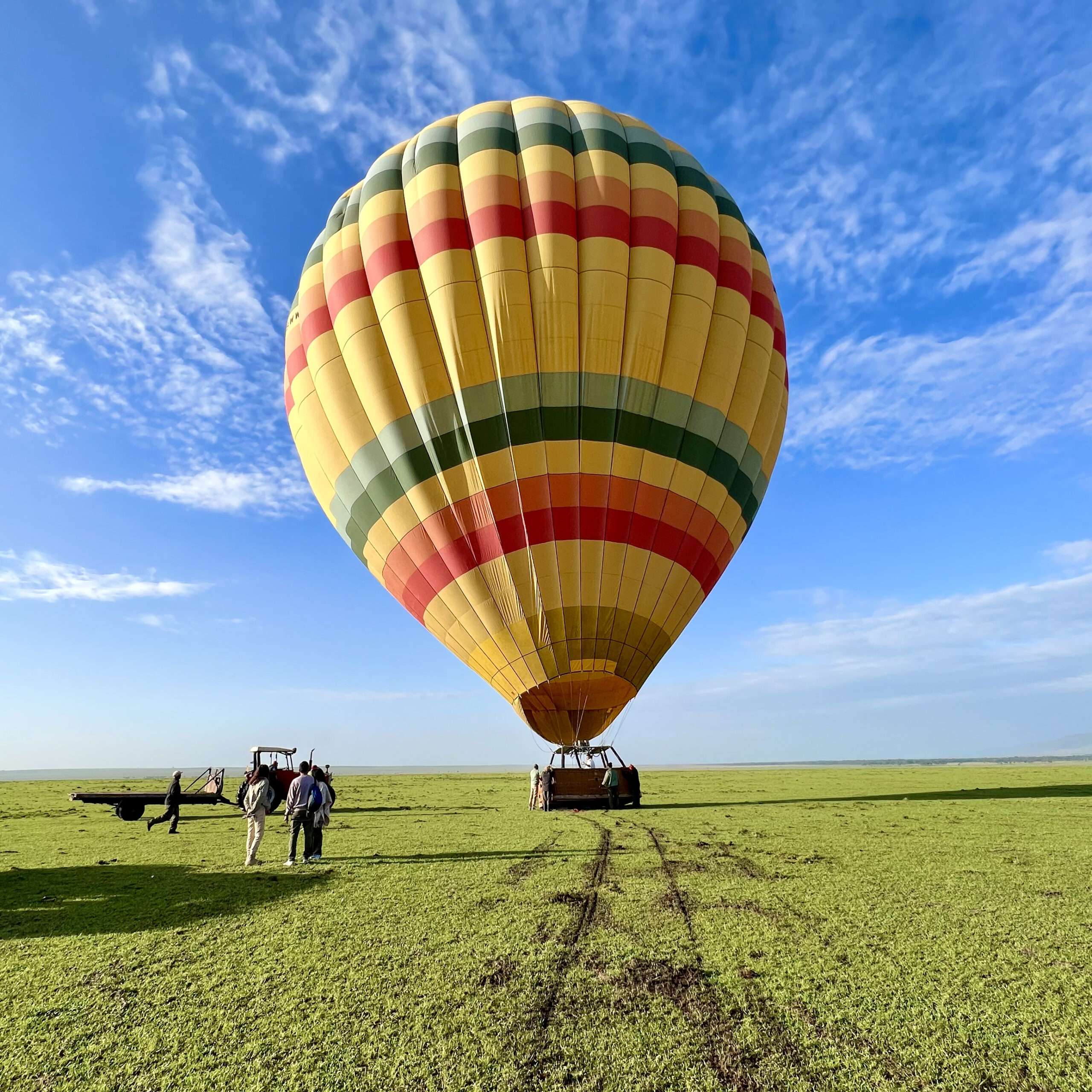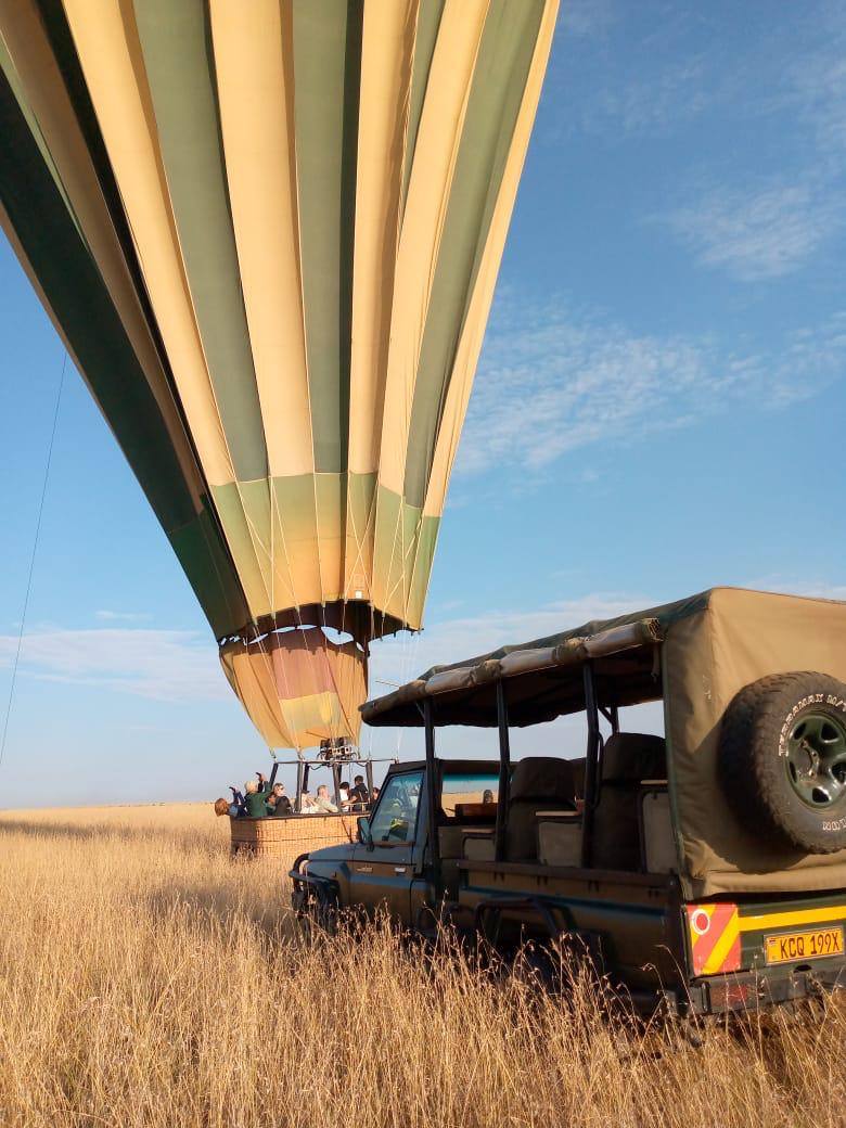 Once the balloon has landed, the pilot will ask you to stay in the basket until he has deflated the balloon and the ground crew and drivers have arrived to pack the balloon away. This is the Masai Mara and wild animals may be close by: so passengers are asked to stay close to the basket until the drivers arrive. In most cases they are there as you land.